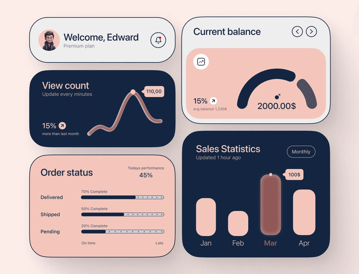 In these projects, I aimed to showcase my skills in using design tools and paying close attention to visual details by taking inspiration from designs published on Dribbble. My focus was more on precision, visual consistency, and a deep understanding of UI design — rather than simply replicating the originals.