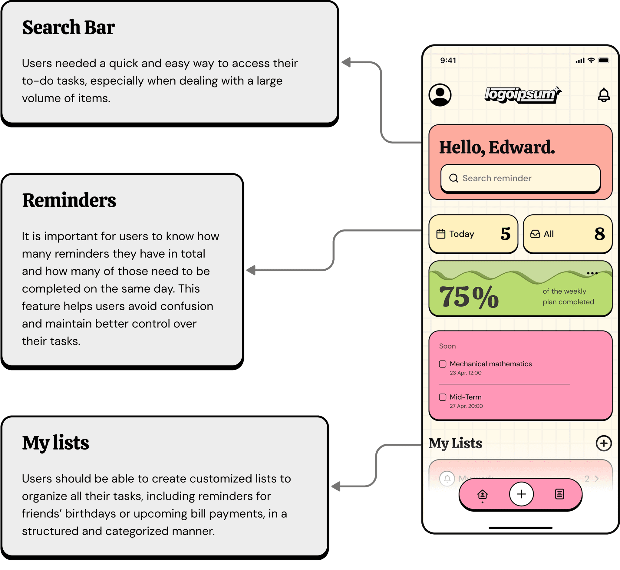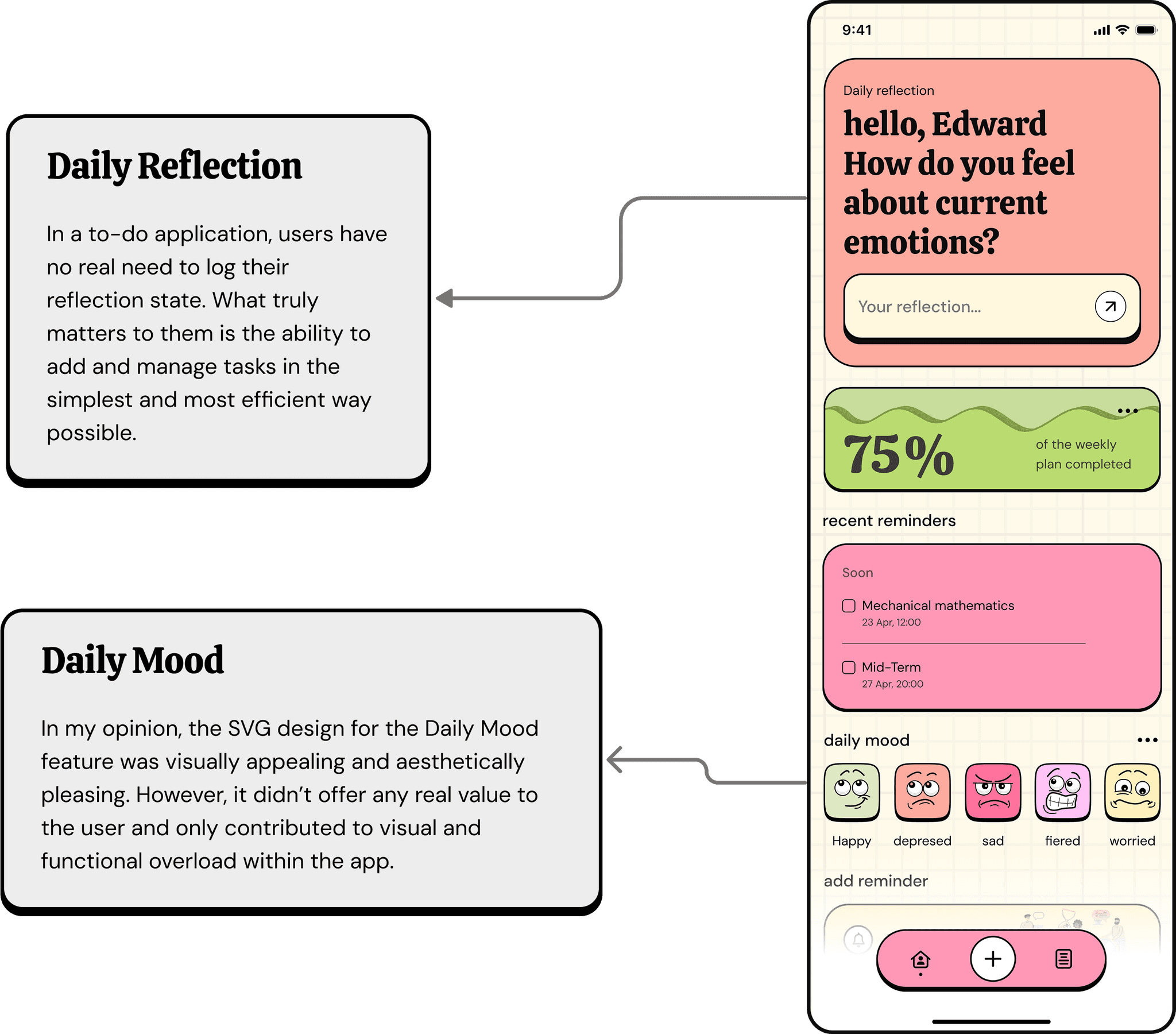 At this stage, I focused on understanding why users would need this app in the first place. Why should they choose this to-do app over other existing alternatives? These questions led me to conduct research into what users truly want and expect from a task management and reminder application.